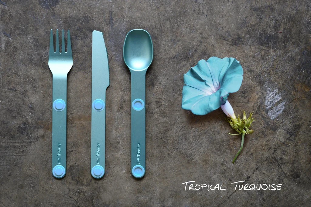 L’idée de la marque en proposant ce produit et d’avoir toujours des couverts avec soi pour éviter d’en utiliser des jetables qui finissent en partie dans les océans. Le Magware est livré avec une housse de rangement en polyester recyclé.