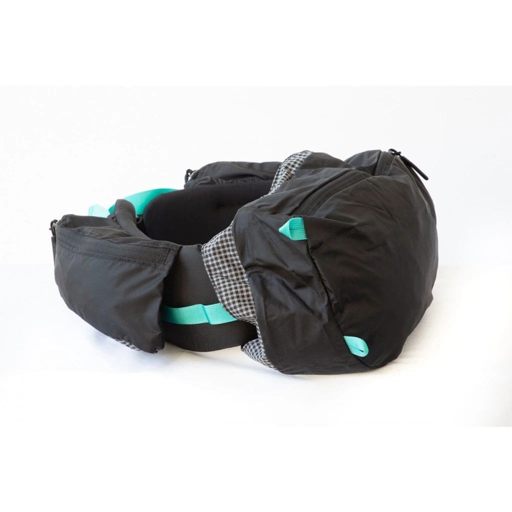 Il est constitué d’un grand volume accessible par le haut grâce à une ouverture/fermeture par enroulement. Une fermeture éclair verticale sur toute la hauteur permet également un accès rapide par le devant. Les nombreuses lanières permettent de bien sangler le sac à dos. Au niveau de la ceinture se trouvent deux poches zippées. Sur les côtés, deux grandes poches généreuses permettent de ranger deux gourdes chacune et une grande poche en mesh extensible est placée sur le devant. Le capot peut être ramené sur le torse pour une utilisation frontale pour un accés à porter de mains. Il peut aussi être combiné avec la ceinture amovible pour obtenir un petit sac, très pratique pour se faire une balade une fois le bivouac installé !