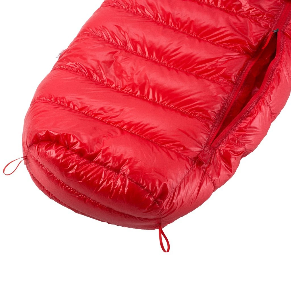 Le Pajak Radical 4Z dispose d’une capuche enveloppante et d’une collerette anti-froid. La fermeture zippée YKK est située à gauche du sac de couchage. Elle est équipée d’un double curseur. Le long de la fermeture, un bourrelet évite les entrées d’air froid.