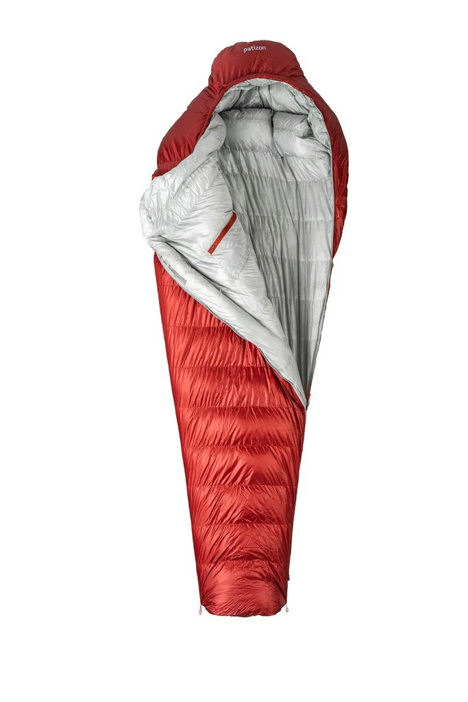 Le sac de couchage Dpro 590 de la marque tchèque Patizon est garni d’un duvet de canard européen hypoallergénique de 700 cuin+, 90/10, certifié RDS. Les 590 grammes sont répartis de façon homogène sur le dessus et le dessous, répartition 50-50 %. La construction des cloisons est réalisée en Z pour limiter la déperdition de chaleur. Avec sa température de confort de -1°C, il convient bien pour un usage 3 saisons en montagne.