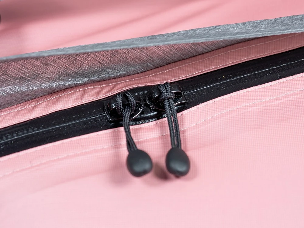 La tente Samaya 2.5 est à la pointe de l’innovation. Le sol est en Dynnema, avec des renforts en Cordura dans les angles. Les haubans réfléchissants sont également en Dyneema. La structure est constituée par 3 arceaux DAC FeatherLite NFL de 8,7 millimètres. Pour l’ancrage, la tente est fournie avec les toutes dernières sardines en plastique incassables de SwissPiranha. Les fermetures éclair sont évidemment signé YYK, avec le modèle Aquaguard résistant aux intempéries. Une tente véritablement robuste.