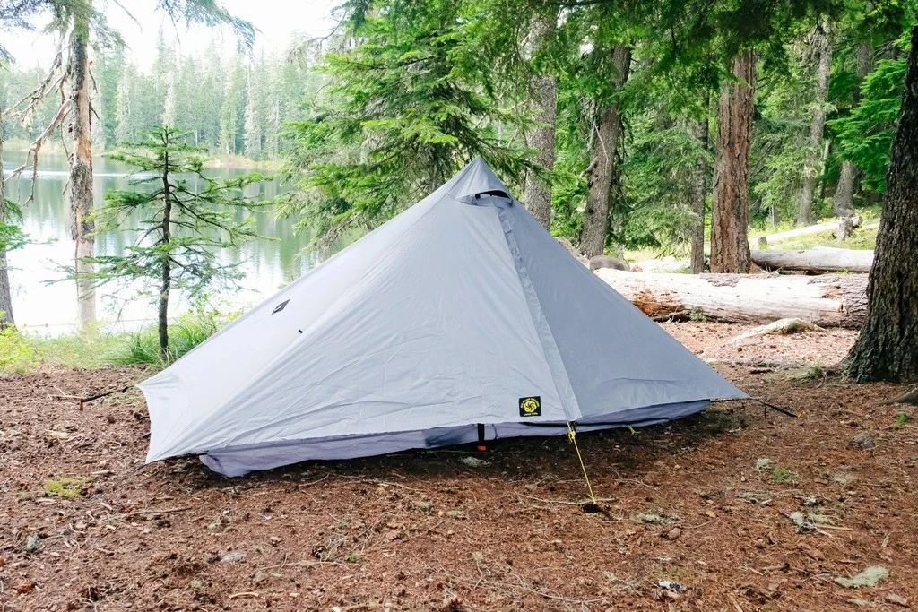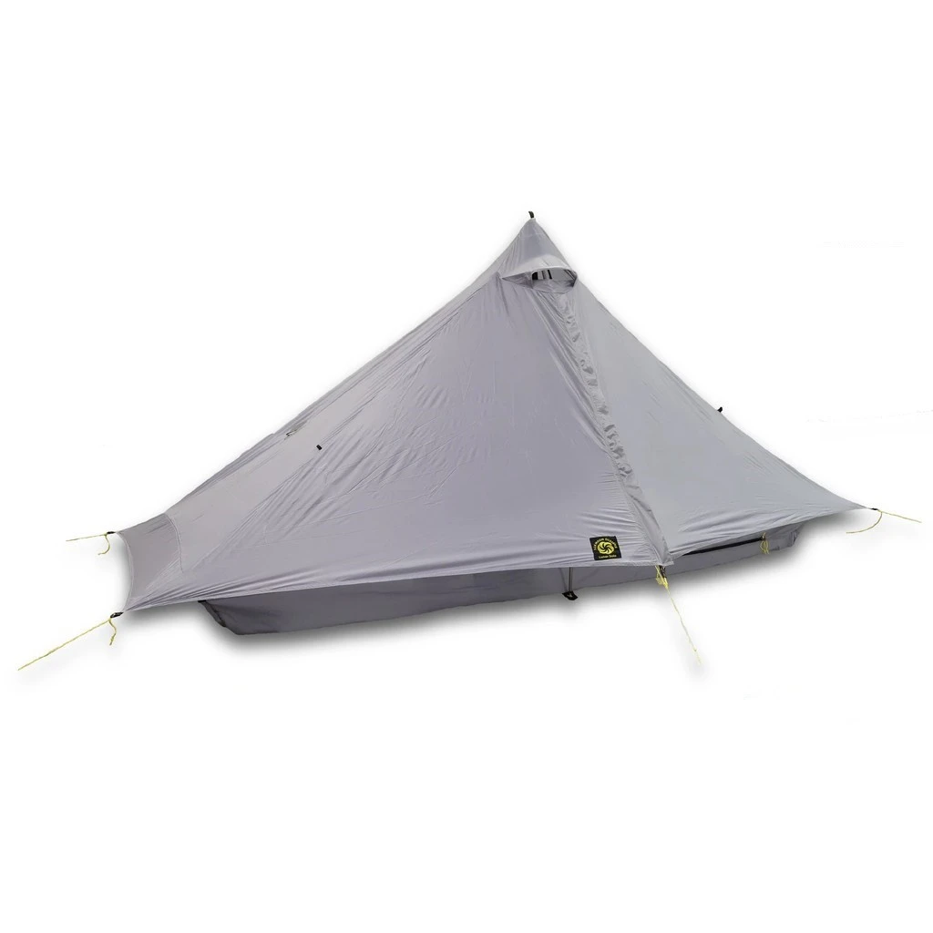 Tarp-tente monoplace ultralégère à monter avec un bâton de randonnée ou un mât.